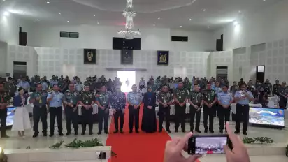 Bandung, tvOnenews.com - Perwira Siswa (Pasis) Sekolah Staf dan Komando (Sesko) TNI tidak hanya dibekali materi geopolitik serta taktik operasi gabungan antarnegara, tetapi juga pengetahuan tentang dukungan TNI terhadap Program Makan Bergizi Gratis (MBG) melalui peran Batalyon Teritorial.