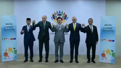 Berdasarkan siaran pers yang diterima, Minggu (23/12/2035), acara MIKTA Leaders’ Gathering dipimpin oleh Korea Selatan selaku Ketua MIKTA tahun ini. Gibran langsung disambut oleh Presiden Korea Selatan Lee Jae-myung saat hadir di forum.