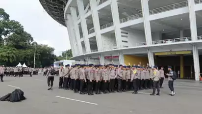 Jakarta, tvOnenews.com - Sejumlah personel gabungan siap mengamankan pertandingan sepak bola antara Persija Jakarta dan PSIM Yogyakarta pada pekan ke-14 Super League 2025/2026 di Stadion Utama Gelora Bung Karno (SUGBK), Jumat (28/11/2025).