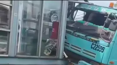 Berdasarkan video yang beredar, truk tersebut menghantam sebagian bangunan halte.