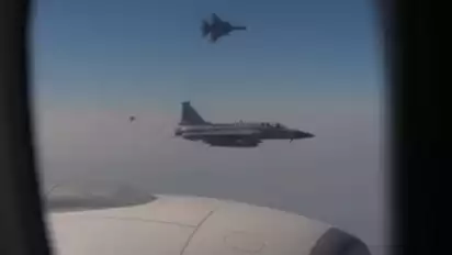 Pengawalan tersebut mengiringi pesawat kepresidenan hingga mendarat mulus di Nur Khan Base Airport, Islamabad, sekitar pukul 12.00 waktu setempat.