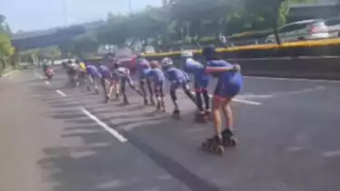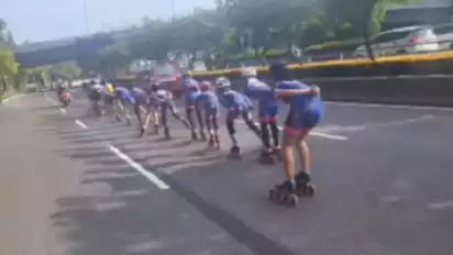 Sebelumnya, warganet melalui akun twitter @pativ7 mengunggah sejumlah pemain sepatu roda pada siang hari yang melintas di tengah jalan raya.