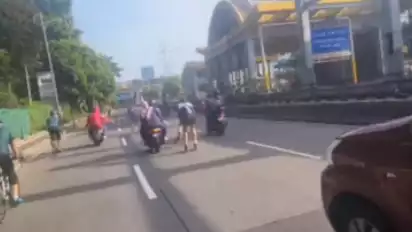 Dalam video itu, bahkan nampak pula beberapa pengendara motor harus mengalah dan memberi tanda kepada kendaraan lain agar berhati-hati dan memberi jalan kepada mereka yang menggunakan sepatu roda.