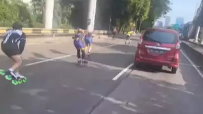 Jakarta - Video sekelompok orang bermain roller skate atau sepatu roda di tengah jalan raya di Jalan Gatot Subroto, Jakarta Pusat, Minggu (8/5/2022) viral di media sosial. Dalam video tampak lebih dari 10 orang beriringan melaju secara zig zag di antara pengendara sepeda motor dan mobil.