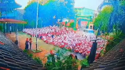 Awalnya seluruh murid yang mengenakan seragam merah putih tengah duduk dan berkumpul di lapangan, bersama guru-gurunya.