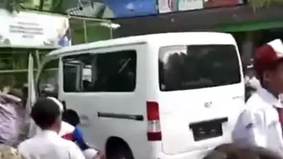 Tiba-tiba, tak disangka, mobil pembawa MBG milik swasta dengan nomor polisi B-2093-UIU masuk dan merangsek ke area sekolah.