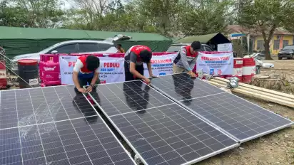 Bahkan, Pertamina menghadirkan Pembangkit Listrik Tenaga Surya (PLTS) di sejumlah titik posko pengungsi di wilayah Aceh Tamiang.