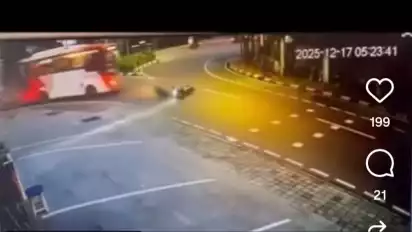 Di saat bersamaan, sebuah bus Minitrans yang dikemudikan pria berinisial W (47) melaju tepat di belakang korban. Karena jarak yang sudah terlalu dekat, pengemudi bus tidak memiliki cukup waktu untuk menghindar.