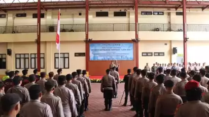 Jakarta, tvOnenews.com - Kapolres Metro Jakarta Pusat Kombes Pol Susatyo Purnomo Condro memimpin Apel Gelar Pasukan Operasi Lilin Jaya 2025 dalam rangka pengamanan perayaan Natal 2025 dan Tahun Baru 2026 di Lapangan Merah Polres Metro Jakarta Pusat, Jumat (19/8/2025).