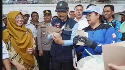 Jakarta, tvOnenews.com — Di sela penyaluran santunan bagi ahli waris korban meninggal dunia akibat banjir dan longsor, Menteri Sosial, Saifullah Yusuf atau Gus Ipul, meninjau langsung dapur umum Kementerian Sosial yang beroperasi di Kantor Wali Kota Sibolga.