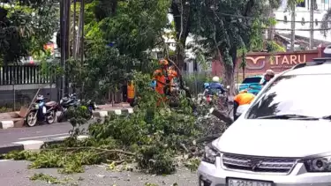 Enam Pohon Tumbang di Jakarta: Satu Orang Luka Hingga Gerbang Kantor Walikota Jakpus Ringsek