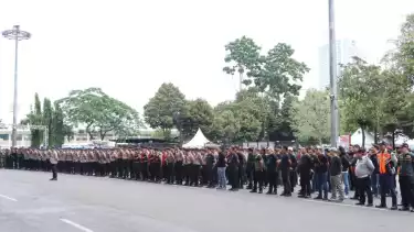 Aparat gabungan telah menggelar apel pelayanan dan Tactical Wall Game (TWG) sejak pukul 13.30 WIB di pintu kuning SUGBK.