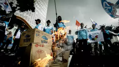 Jakarta, tvOnenews.com - Ribuan buruh dari berbagai elemen serikat pekerja menggelar aksi demonstrasi di Jalan Merdeka Selatan, Jakarta Pusat. Aksi ini dilakukan sebagai bentuk protes dan tuntutan kepada Gubernur Jawa Barat, Dedi Mulyadi, agar merevisi penetapan upah minimum tahun 2026 yang dinilai belum berpihak pada kesejahteraan buruh. Selasa (30/12/2025).