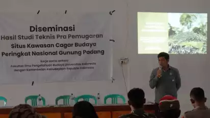 Cianjur, tvOnenews.com - Fakultas Ilmu Budaya Universitas Indonesia (FIB UI) sebagai mitra Kementerian Kebudayaan Republik Indonesia menyelenggarakan kegiatan Diseminasi Hasil Studi Teknis Pra-Pemugaran Situs Cagar Budaya Nasional Gunung Padang pada 29–30 Desember 2025. Kegiatan ini berlangsung di Desa Karyamukti, Kecamatan Campaka, Kabupaten Cianjur, Jawa Barat.