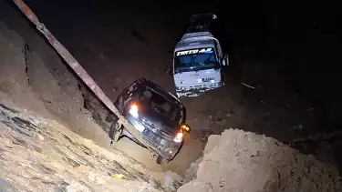 Peristiwa logsornya jembatan jalan tersebut mengakibatkan dua mobil terseret longsoran.
