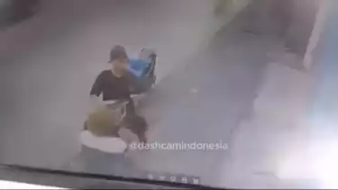 Dalam rekaman video, korban terlihat dihampiri dua pelaku lalu ditabrak menggunakan sepeda motor hingga terjatuh.