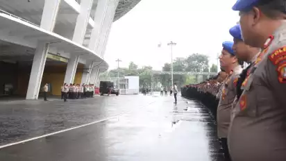Jakarta, tvOnenews.com - Ribuan personel gabungan dikerahkan dalam rangka pengamanan pertandingan BRI Super League 2025/2026 Pekan ke-18 antara Persija Jakarta vs Madura United, di Stadion Utama Gelora Bung Karno (SUGBK), Senayan, Jakarta Pusat, Jumat (23/1/2026).