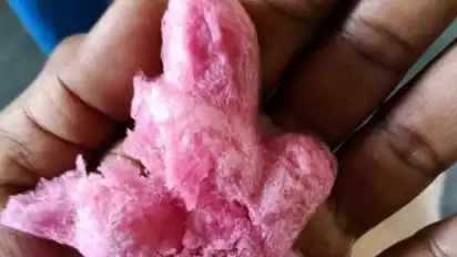 "Bahannya enggak hancur. (Ini) dari spons ya. Kalau dia kue pasti hancur, atau agar-agar. Nah ini dari spons," ujar aparat kepolisian.