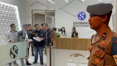 Jakarta, tvOnenews.com -Kantor PT Shinhan Sekuritas Indonesia di sebuah gedung perkantoran di kawasan Jakarta Selatan digeledah Direktorat Tindak Pidana Ekonomi Khusus (Dittipideksus) Bareskrim Polri diduga terkait tindak pidana pasar modal.