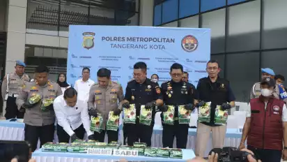 Jakarta, tvOnenews.com - Tim Bea Cukai dan Polres Tangerang Kota berhasil menggagalkan peredaran narkotika 25 kg, yang dikirim dari Kapal Serasi V dari Pelabuhan Belawan ke Pelabuhan Patimban, Jumat (13/2/2026).