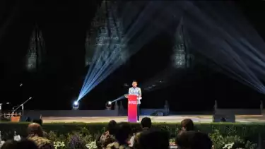 “Saya sangat berharap Anda menikmati kesempatan berada di sini di Candi Prambanan, malam ini. Kami bersantap dan menyaksikan secara langsung keindahan salah satu temuan arkeologis terbesar di Indonesia. Di Jawa, kita bisa menemukan candi-candi yang indah, serta fosil-fosil makhluk prasejarah dan manusia,” ungkapnya.