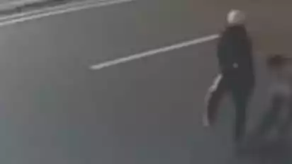 Terlihat seorang pria diduga korban berlarian dan tengah diserang oleh terduga pelaku. Kemudian korban ditabrak oleh diduga kawanan pelaku dan korban kembali berupaya melarikan diri.