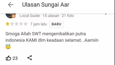 Itulah, kabar hilangnya anak Ridwan Kamil dan netizen Indonesia beramai-ramai berdoa di ulasan Sungai Aare Google Maps. (ind)