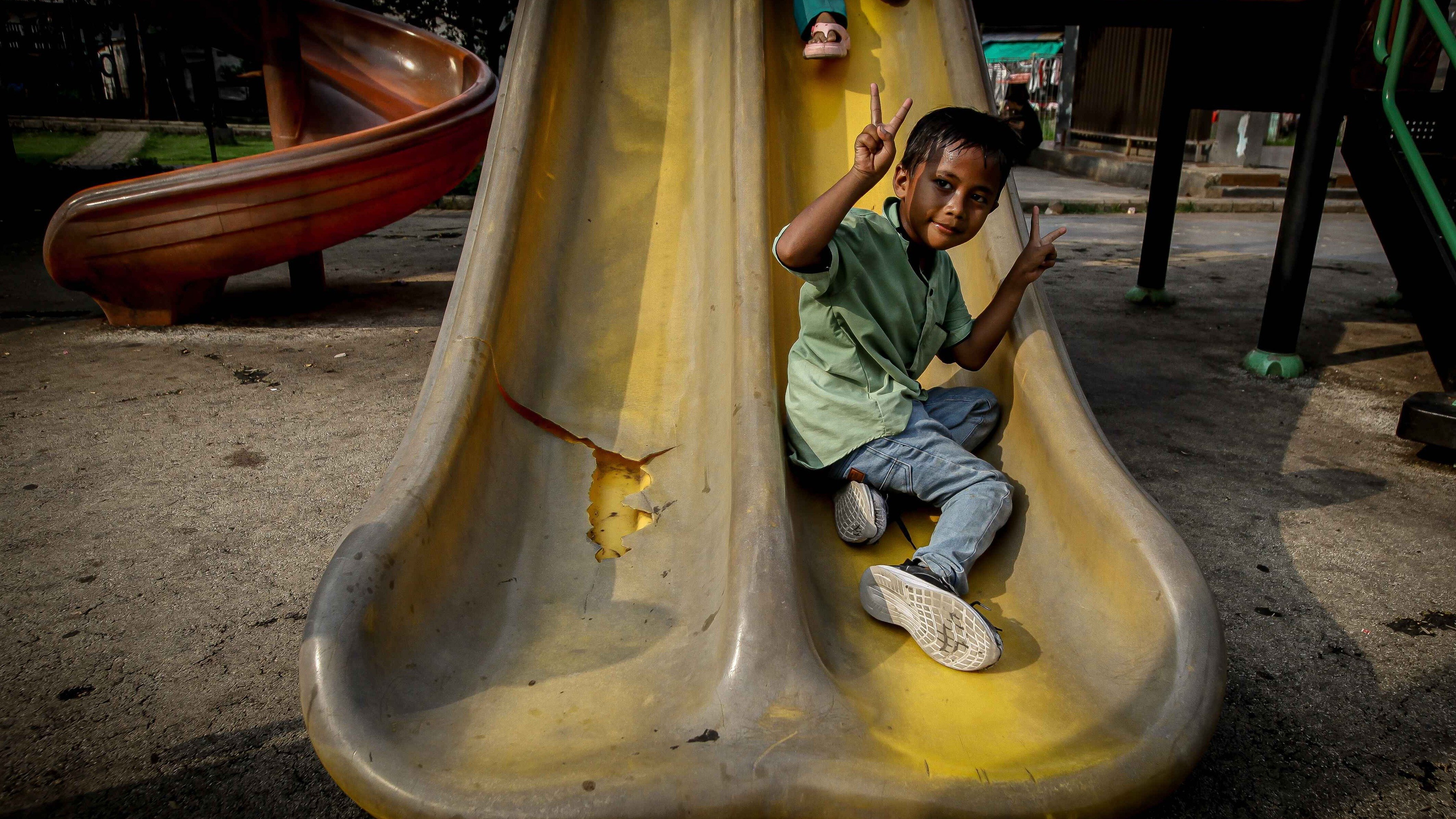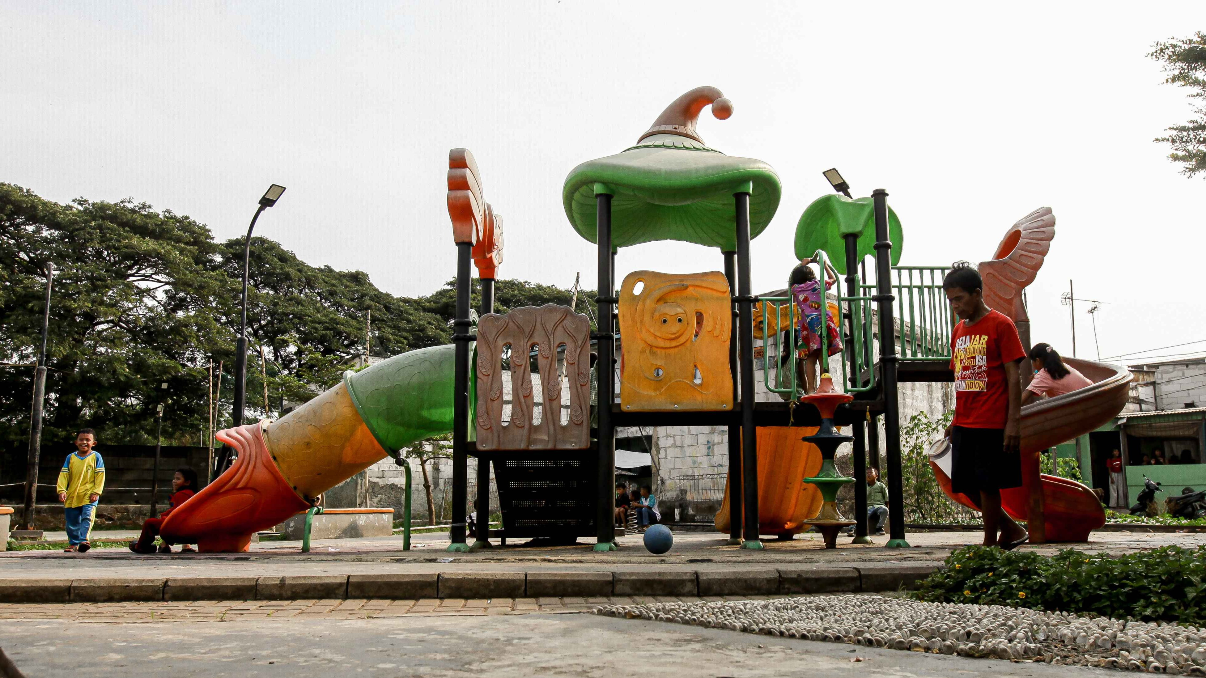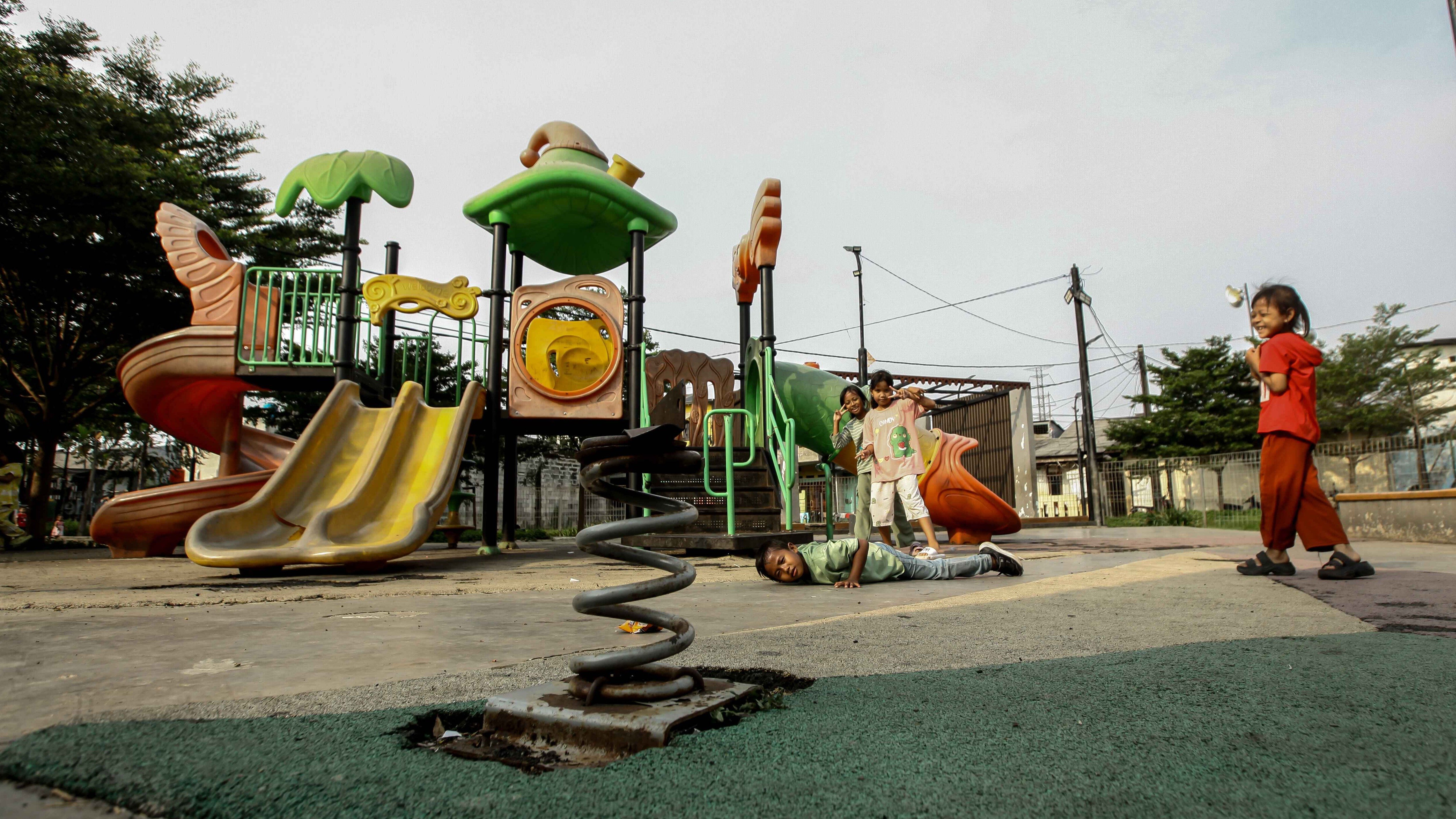Meski dalam kondisi yang jauh dari layak, taman ini masih dimanfaatkan oleh anak-anak sekitar untuk bermain.