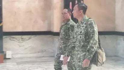 Berdasarkan pantauan di lokasi, Agus dan rombongan pejabat TNI tampak hadir pada pukul 08.50 WIB.
