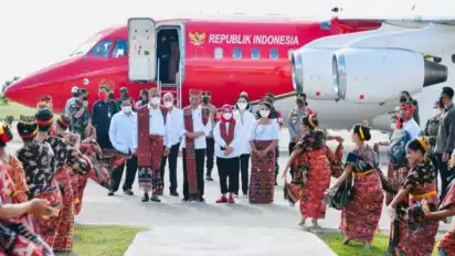 Jakarta - Presiden Joko Widodo dan Ibu Iriana Joko Widodo tiba di Bandar Udara Umbu Mehang Kunda, Kabupaten Sumba Timur, Nusa Tenggara Timur, sekitar pukul 09.20 WITA.