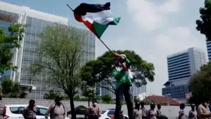 Massa menilai kekerasan yang dilakukan Israel terhadap warga Palestina merupakan bentuk kejahatan terhadap kemanusiaan.