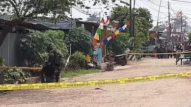 Kepolisian telah membentangkan garis polisi. Namun, warga sekitar masih berkerumun di sekitar lokasi. (Kurnia Dwi Hapsari/act)
