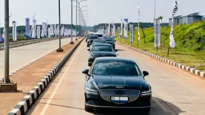 Di mobil listrik lainnya, tampak Menteri BUMN Erick Thohir duduk bersama dengan Menteri Lingkungan Hidup dan Kehutanan Siti Nurbaya Bakar. Adapun Gubernur Jawa Tengah Ganjar Pranowo menumpangi mobil listrik lainnya bersama dengan istri.