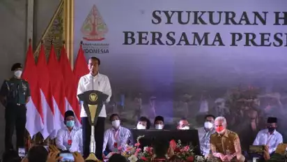 Batang, Jawa Tengah - Presiden Republik Indonesia, Joko Widodo, menegaskan kepada jajarannya agar tidak membiarkan ada lahan perhutanan sosial yang telantar dan tidak produktif. Hal tersebut diutarakan Presiden saat menghadiri acara syukuran hasil bumi Gerakan Masyarakat (Gema) Perhutanan Sosial yang digelar di Lapangan Omah Tani, Kecamatan Bandar, Kabupaten Batang, Rabu (08/06/2022).