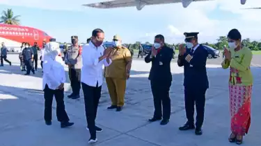 Wakatobi, Sulawesi Tenggara - Presiden Joko Widodo (Jokowi) didampingi Ibu Iriana Jokowi, Kamis (9/6/2022) pagi tadi mengunjungi Kabupaten Wakatobi, dengan menggunakan Pesawat ATR melalui Pangkalan TNI AU Haluoleo, Kabupaten Konawe Selatan, Sulawesi Tenggara, sekitar pukul 07.40 WITA.
