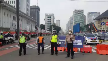 Petugas Gabungan Jaga Jalan Thamrin Saat Penerapan Gage