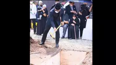 Salah satunya adalah potret Gubernur Jawa Barat Ridwan Kamil yang terlihat mengenakan pakaian serba hitam menggunakan cangkul untuk menaburkan tanah pertama kali ke makam sang putra sulung tercinta.