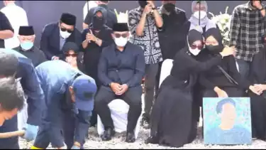 Pada momen pemakaman Eril tersebut, Zara terlihat menenteng lukisan potret Eril tengah tersenyum lebar.