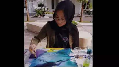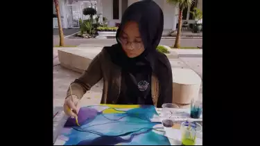 Zara terlihat sangai piawai menorehkan setiap goresan dalam kanvas tersebut. Terlihat, Zara menggunakan cat minyak atau oil paint sebagai tools dalam melukisnya.