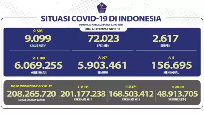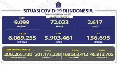 Jakarta - Situasi COVID-9 di Indonesia mengalami kenaikan. Satgas Covid 19 melaporkan kasus harian COVID-19 bertambah 1.180 orang pada Senin (20/6/2022).