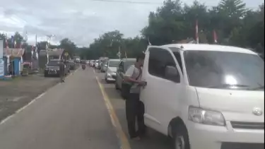 Luwu, Sulawesi Selatan - Kemacetan panjang terjadi di jalan trans Sulawesi, Kecamatan Larompong, Kabupaten Luwu, Sulawesi Selatan, mengular hingga 11 kilometer akibat jalan terendam banjir.