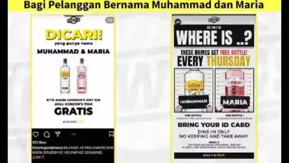 Dalam dua unggahan yang telah viral itu, Holywings membuat promo minuman alkohol gratis untuk orang-orang bernama "Muhammad dan Maria".
