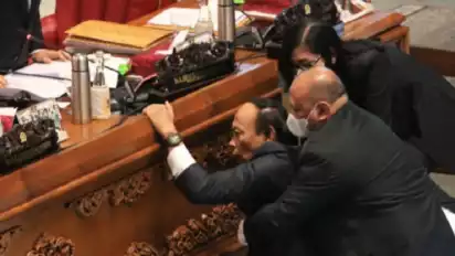 Jakarta - Rapat Paripurna ke-26 Dewan Perwakilan Rakyat (DPR) diwarnai dengan peristiwa mengejutkan ketika Wakil Ketua Banggar DPR RI, Muhidin Mohamad Said terjatuh usai membacakan Laporan Badan Anggaran DPR RI atas Hasil Pembahasan Pembicaraan Pendahuluan RAPBN Tahun Anggaran 2023 dan Rencana Kerja Pemerintah Tahun 2023.