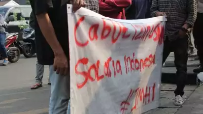 Dalam aksinya, Jaringan Mahasiswa Hukum Indonesia juga mengungkap agar izin usaha Solaria dicabut.