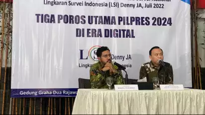 "Di kantong politik digital, poros KIB terlihat unggul dibanding poros PDIP, maupun poros Gerindra-PKB," jelas Direktur CPA Lembaga Survei Indonesia Denny JA, Ade Mulyana, Jakarta, Rabu (6/7/2022).