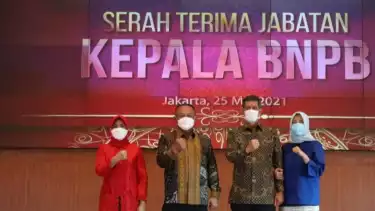 Jakarta, 26/5 - Kepala Badan Nasional Penanggulangan Bencana (BNPB) periode 2019-2021 Doni Monardo berpesan penanggulangan bencana harus tetap menjadi program prioritas setelah serah terima jabatan kepada Ganip Warsito.