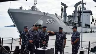 Ranai, Natuna - Pangkoarmada RI Laksamana Madya TNI A. Rasyid memeriksa langsung kesiapan unsur pada KRI Bontang-907 dan KRI Cut Nyak Dien-375, yang tengah melaksanakan patroli rutin di Laut Natuna Utara, Jumat (15/07/2022). Pemeriksaan tersebut dilakukan Pangkoarmada RI untuk memastikan bahwa unsur KRI yang tengah bertugas di perairan Laut Natuna Utara tetap selalu dalam keadaan siap siaga.