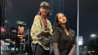 Paula Verhoeven istri Baim Wong saat berpose dengan salah satu ikon Citayam Fashion Week Bonge.