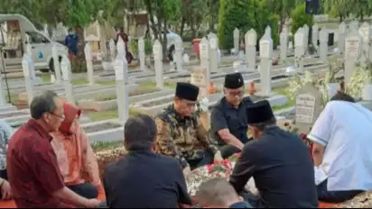 Selain berdoa dan menabur bunga di makam Tjahjo Kumolo, Hasto dan rombongan juga menyempatkan diri mendoakan sejumlah tokoh di TMP Kalibata.