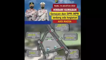 1. Arus lalu lintas dari Jalan Gatot Subroto yang menuju DPR/MPR akan dibelokkan ke kiri ke Jalan Gerbang Pemuda